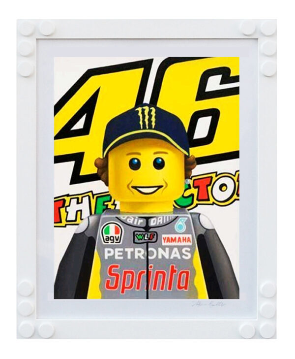 La Stampa Lego Bolcato Valentino Rossi VR46 Fine Art viene fornita di Certificato di Autenticità: edizione Limitata a 150 esemplari, firmata e numerata a mano da Stefano Bolcato.